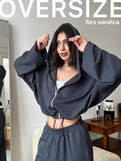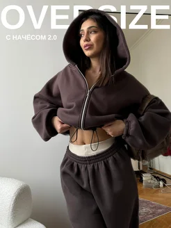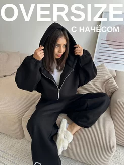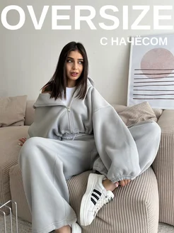 Спортивный костюм теплый с начесом с капюшоном оверсайз