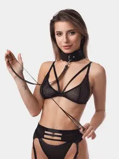 Ошейник бдсм для секса 18+ с мехом и поводком