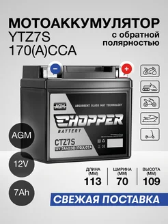 Аккумулятор для мотоцикла AGM 12В 7Ач СТ1207.2, YTZ7S