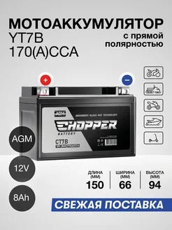 Аккумулятор для мотоцикла AGM 12В 8 Ач СТ1208, YT7B