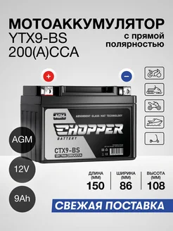 Аккумулятор для мотоцикла AGM 12В 9 Ач СТ1209, YTX9-BS