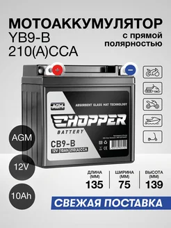 Аккумулятор для мотоцикла AGM 12В 10 Ач СТ1210, YB9-B