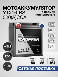 Аккумулятор для мотоцикла AGM 12В 16 Ач СТ1216.1, YTX16-BS