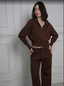Костюм теплый вязаный трикотажный на молнии с брюками