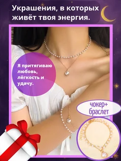 Цепочка на шею жемчужная с подвеской