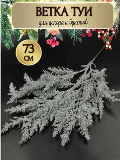 Ветка туи в снегу глиттерная для декора, 73 см