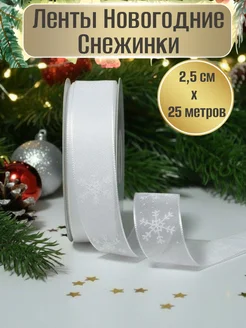 Лента органза новогодняя Снежинки белая