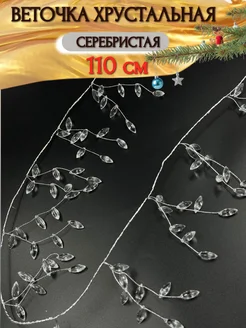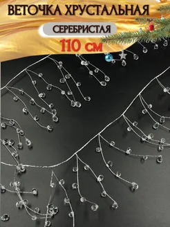 Веточка хрустальная длинная гирлянда серебристая 110 см