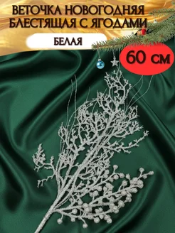 Веточка с ягодами новогодняя блестящая белая 60 см
