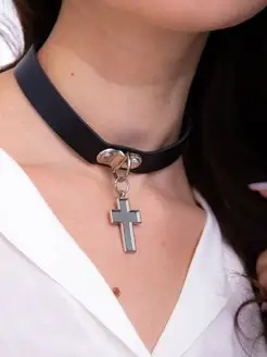 Чокер на шею кожаный с крестом