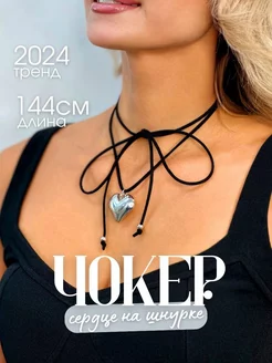 Чокер на шею сердце шнурок