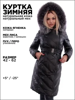 Куртка зимняя из натуральной кожи с капюшоном удлиненная