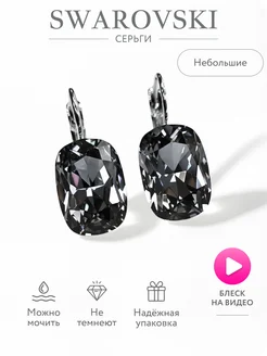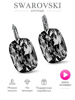 Cерьги SWAROVSKI чёрные крупные с большим камнем S 925