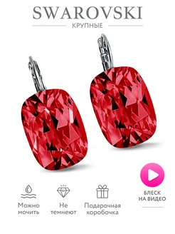Cерьги SWAROVSKI красные крупные с большим камнем S 925