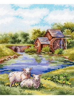 Набор для вышивания крестиком деревня мельница