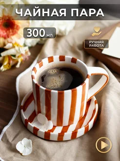 Чайная пара подарочная, чашка с блюдцем 300 мл керамика
