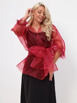 Блуза накидка праздничная вечерняя с перьями