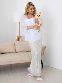 Блузка праздничная вечерняя с перьями
