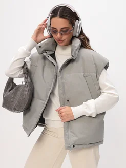 Жилетка женская утепленная демисезонная оверсайз безрукавка