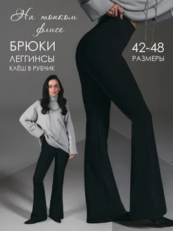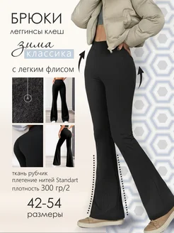Брюки леггинсы клеш в рубчик с легким начесом