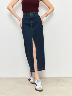 Джинсовая юбка длинная макси в пол с разрезом спереди