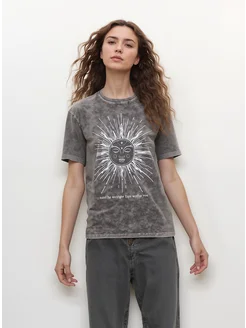 Футболка оверсайз варенка с принтом солнцем и надписью