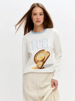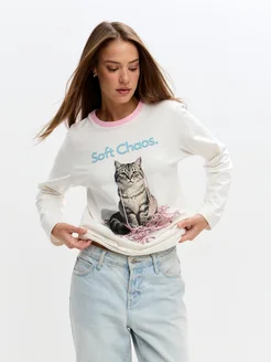 Оверсайз лонгслив с длинным рукавом и принтом базового кроя