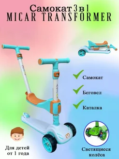 Самокат 3 в 1 с сиденьем и ручкой для родителей