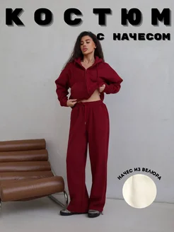 Костюм с начесом теплый со штанами палаццо на кулиске