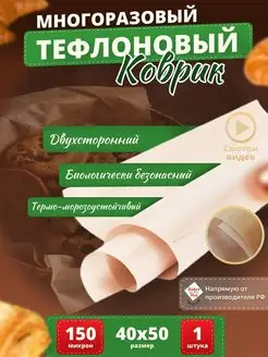 150мкм 1шт 50х40см Тефлоновый коврик для выпечки и запекания
