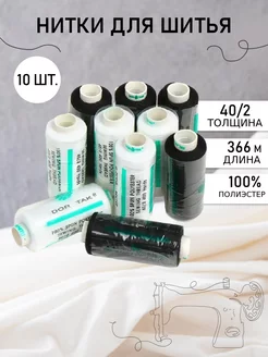 Нитки для шитья 40 2 цв.белый и черный Набор 10 шт