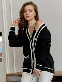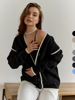Кардиган вязаный оверсайз на пуговицах удлиненный кофта