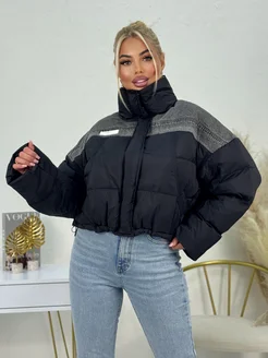 Куртка чёрная зимняя Оверсайз с джинсой