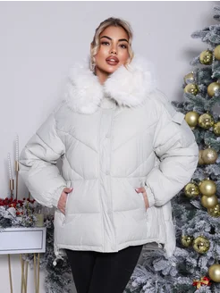 Куртка белая зимняя Оверсайз с капюшоном