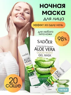 Маска для лица ночная увлажняющая несмываемая с алоэ 20 шт