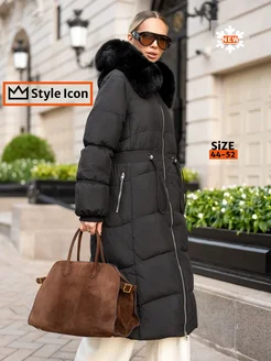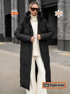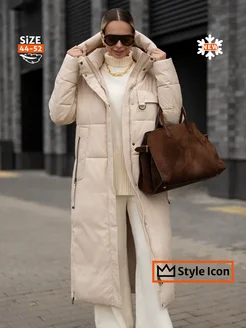 Пуховик зимний длинный с капюшоном оверсайз