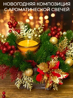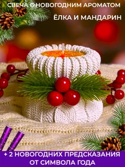 Свеча новогодняя ароматизированная Елка и Мандарин в гипсе