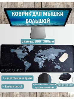 Большой игровой коврик для мышки карта мира 800х300мм
