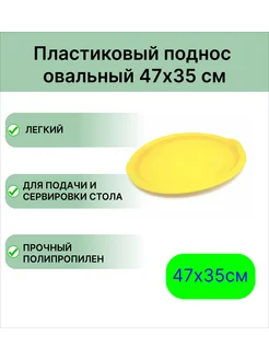 Пластиковый поднос овальный 47*35 см, цвет желтый