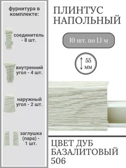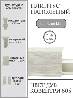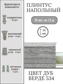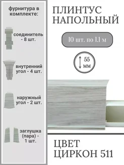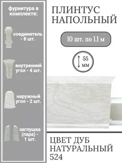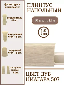Плинтус для пола пластиковый 10 шт. по 1.1м с фурнитурой