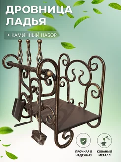 Дровница с каминным набором Ладья