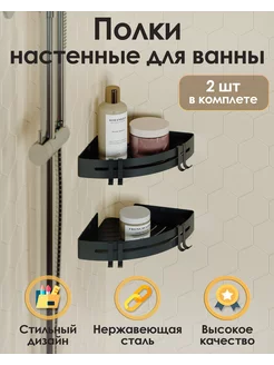 Настенная угловая полка в ванну ХайТекXL 29х4х21 черная 2 шт