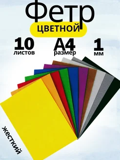 Фетр для рукоделия и творчества цветной А4 1 мм 10 листов