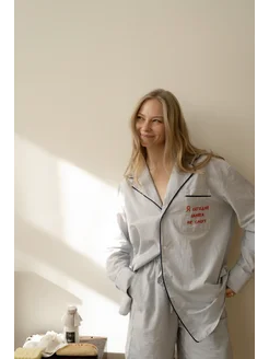 женская трендовая пижама в полоску с брюками и рубашкой