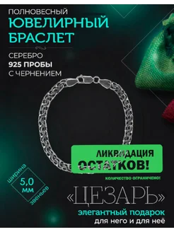 Браслет Цезарь серебряный черненый, ширина 5 мм