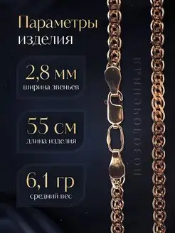 Цепочка Нонна серебряная позолоченная, ширина 2,8 мм