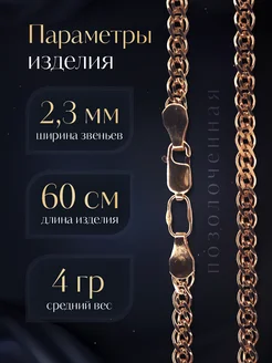 Цепочка Нонна серебряная позолоченная, ширина 2,3 мм
