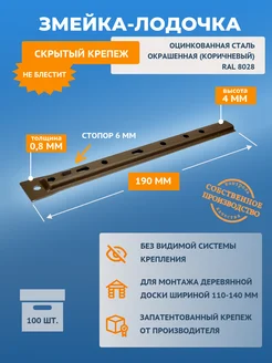 Скрытый крепеж Змейка-Лодочка 190ЛЦС100 темно-коричневый