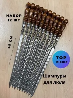 Шампур для люля с деревянной ручкой, 45 см, 12 шт