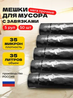 Мешки для мусора 35 л прочные черные с завязками